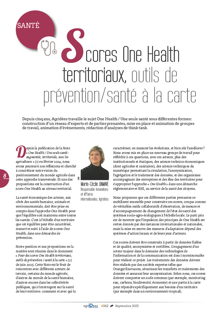 Numéro 262 - Scores One Health territoriaux, outils de prévention/santé à la carte