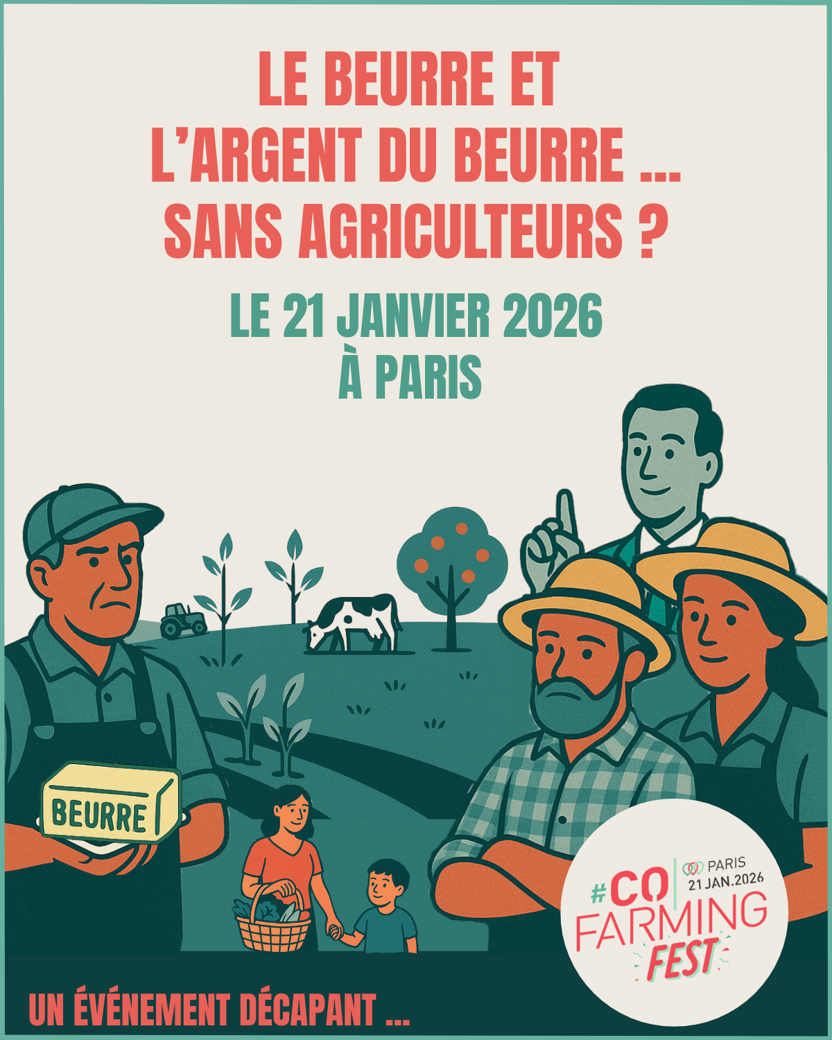 Organisé par l’association #CoFarming, le CoFarming Fest 2026 se tiendra le 21 janvier 2026 à Paris, dans les locaux d’Agridées, pour une journée entière dédiée aux défis, paradoxes et opportunités de l’agriculture de demain. Sous le thème provocateur « Le beurre et l’argent du beurre… sans agriculteurs ? », le CoFarming Fest 2026 invite à interroger les contradictions qui traversent notre système agricole et alimentaire...
