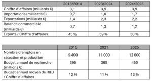 SEMAE a également présenté des chiffres clés actualisés pour la filière semences avec les données 2025, permettant de mettre à jour les statistiques présentées dans la Note d’Agridées. Le dynamisme économique de la filière est bien confirmé, avec le nombre d’emplois en hausse, le maintien du chiffre d’affaires et de l’excédent commercial à des niveaux élevés et l’intensification de l’innovation.