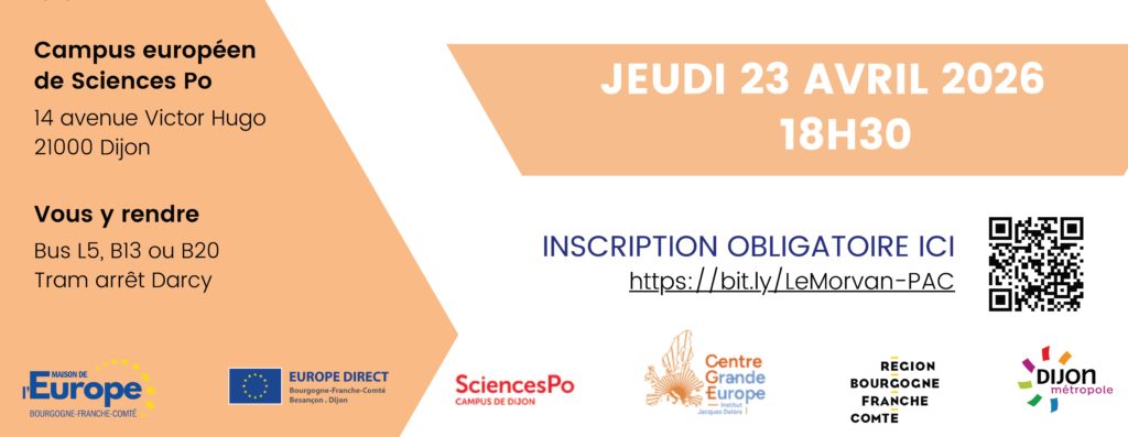 Le cycle de conférences « Les Rendez-vous de l’Europe » est le fruit d’un partenariat entre Sciences Po Paris – Campus de Dijon et la Maison de l’Europe en Bourgogne-Franche-Comté – Centre EUROPE DIRECT Dijon.